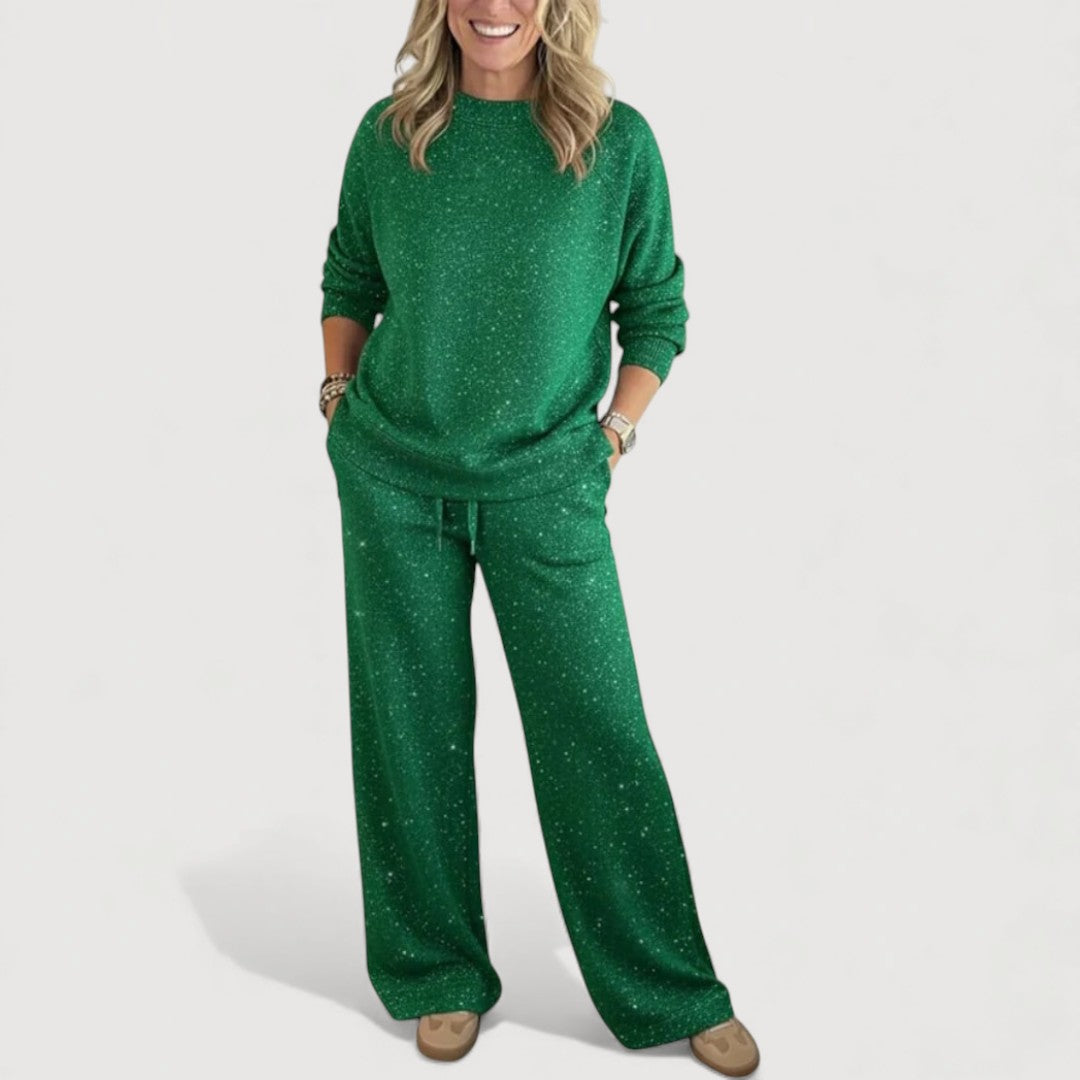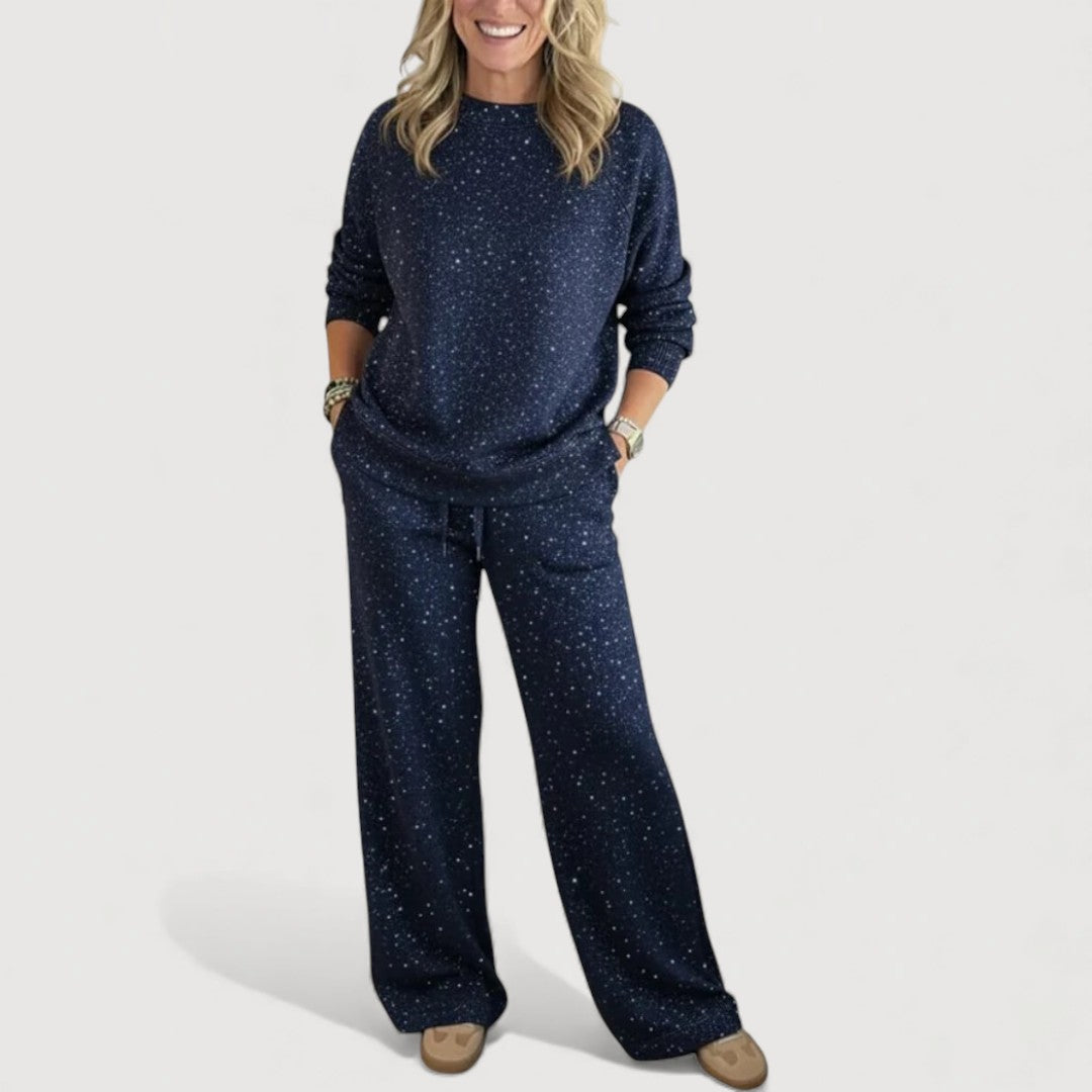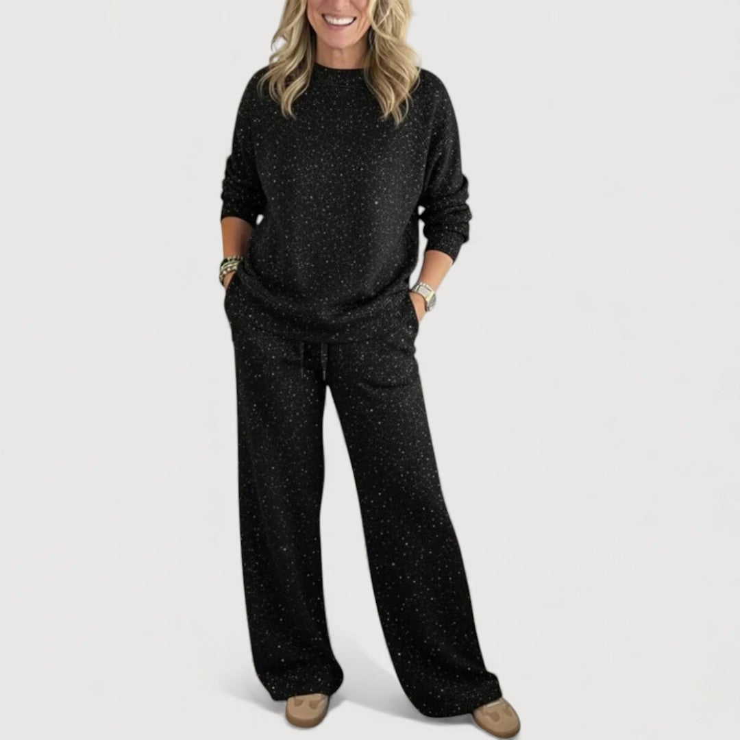 Alenna Sparkle Lounge Set offers the perfect balance of comfort and relaxed elegance. With its softly draped top and easy wide-leg trousers, this coordinated set brings effortless style to quiet days at home, casual outings or cosy evenings. Designed to move gently with your body, it provides all-day comfort while maintaining a refined, polished look.